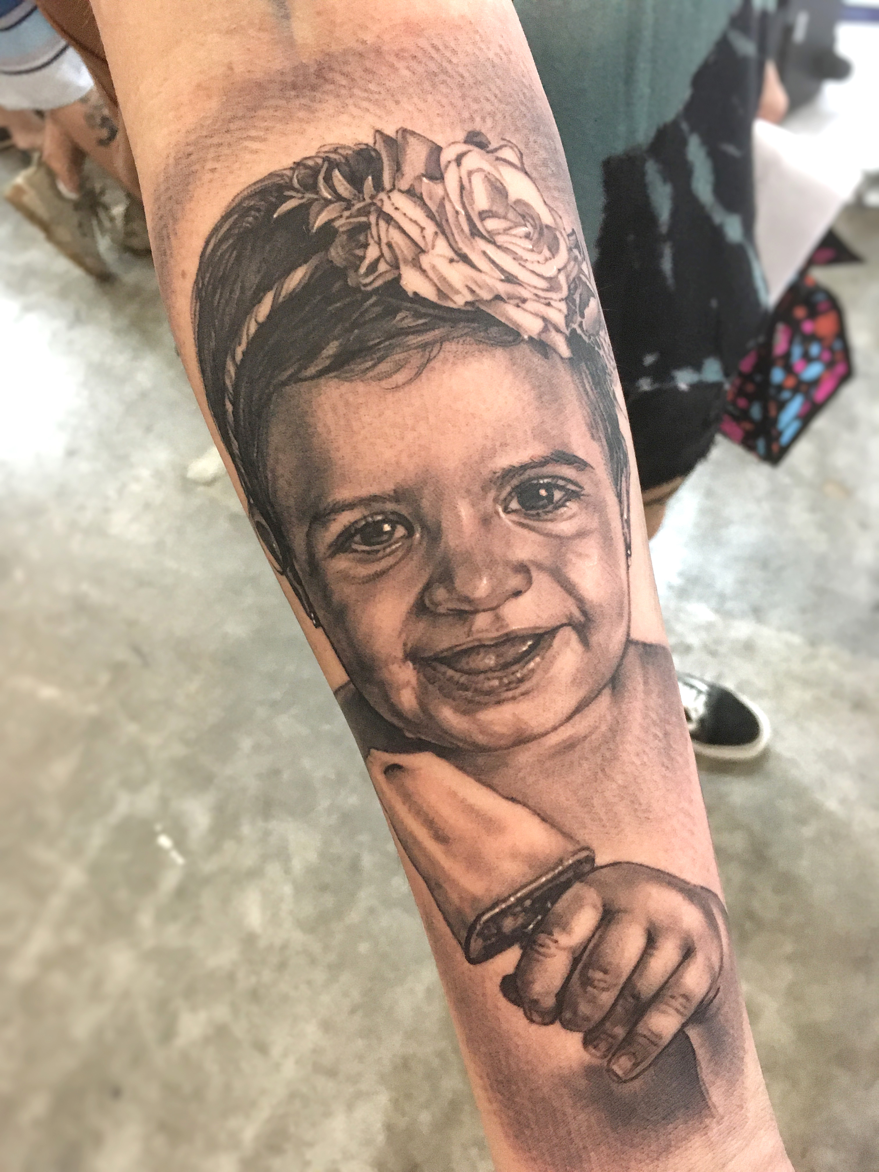 Por fim, o terceiro projeto que apresentei na Tattoo Week foi um retrato, competindo na categoria “Portrait”. Através de técnicas meticulosas, busquei capturar a essência e a personalidade do retratado, transmitindo emoções por meio da tinta na pele.